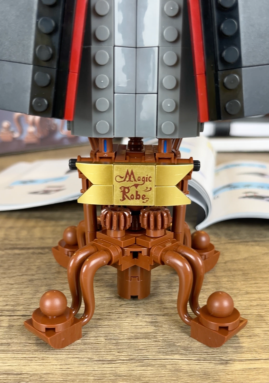 Designed with sharp structure and rich interior accents, this robe recreates the unmistakable silhouette of elite magical academy wear — transformed into a refined brick display centerpiece.